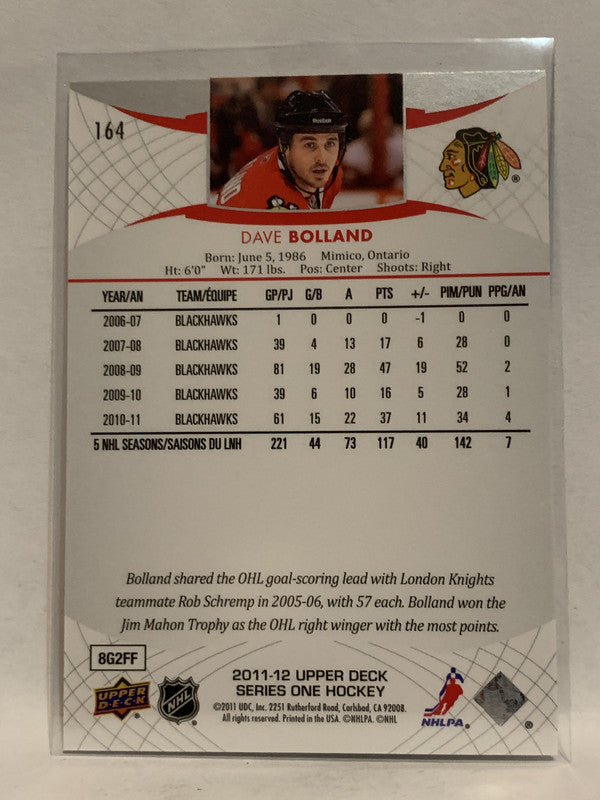 #164 Dave Bolland Chicago Blackhawks 2011-12 Upper Deck Series One Hockey Card