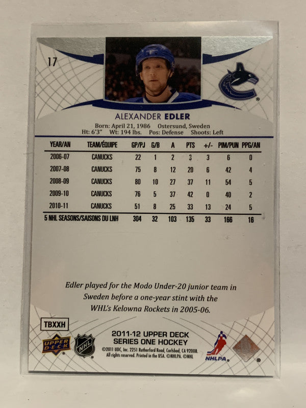 #17 Alexander Edler Vancouver Canucks 2011-12 Upper Deck Series One Hockey Card NHL