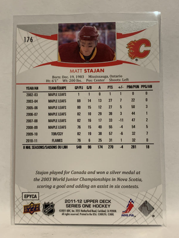 #176 Matt Stajan Calgary Flames 2011-12 Upper Deck Series One Hockey Card