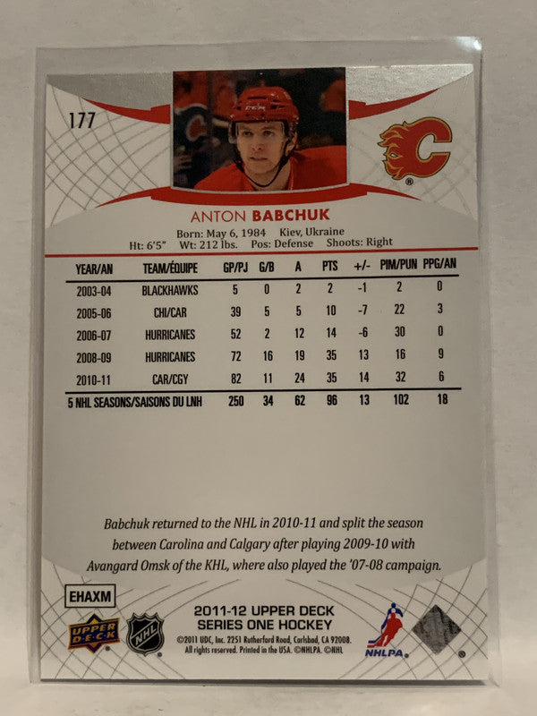 #177 Anton Babchuk Calgary Flames 2011-12 Upper Deck Series One Hockey Card