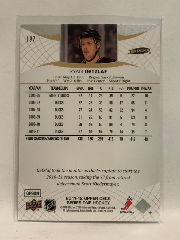 #197 Ryan Getzlaf Anaheim Ducks 2011-12 Upper Deck Series One Hockey Card