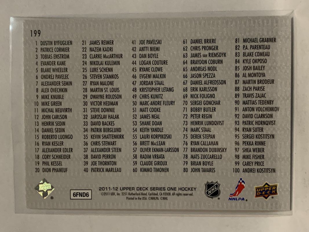 #199 Checklist Vancouver Canucks 2011-12 Upper Deck Series One Hockey Card