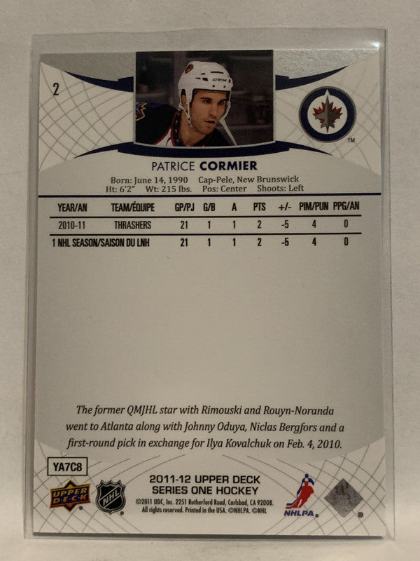 #2 Patrice Cormier Winnipeg Jets 2011-12 Upper Deck Series One Hockey Card