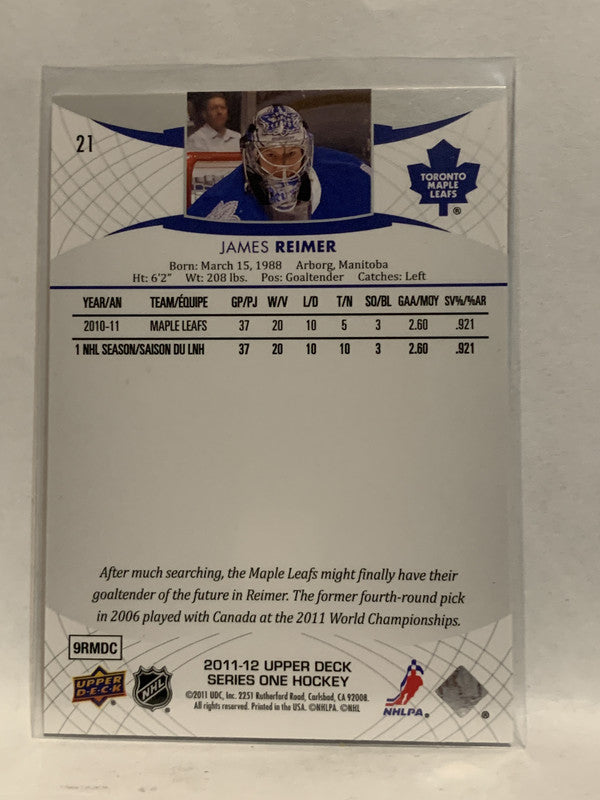 #21 James Reimer Toronto Maple Leafs 2011-12 Upper Deck Series One Hockey Card