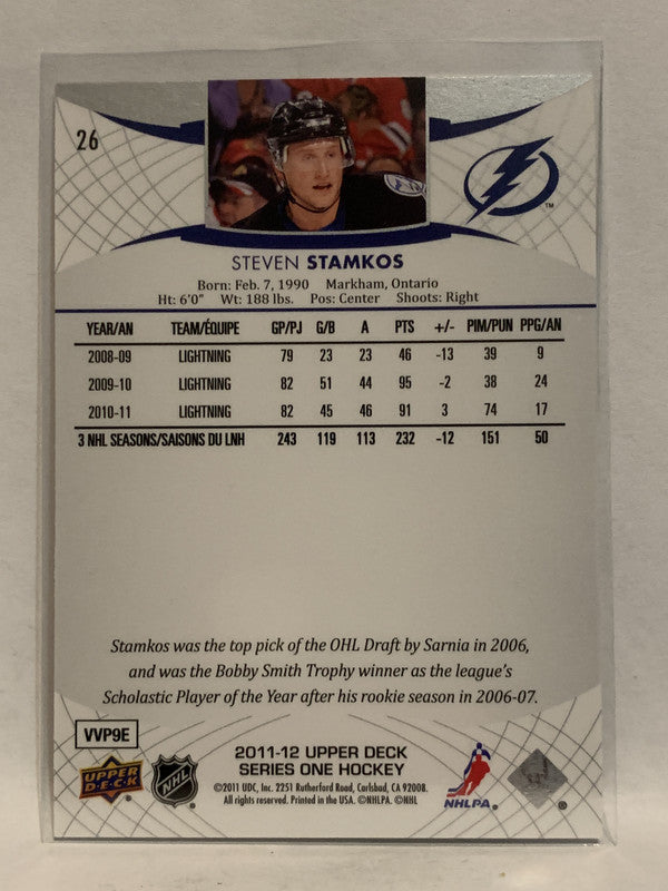 #26 Steven Stamkos Tampa Bay Lightning 2011-12 Upper Deck Series One Hockey Card