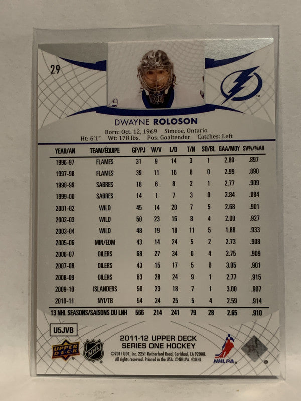 #29 Dwayne Roloson Tampa Bay Lightning 2011-12 Upper Deck Series One Hockey Card