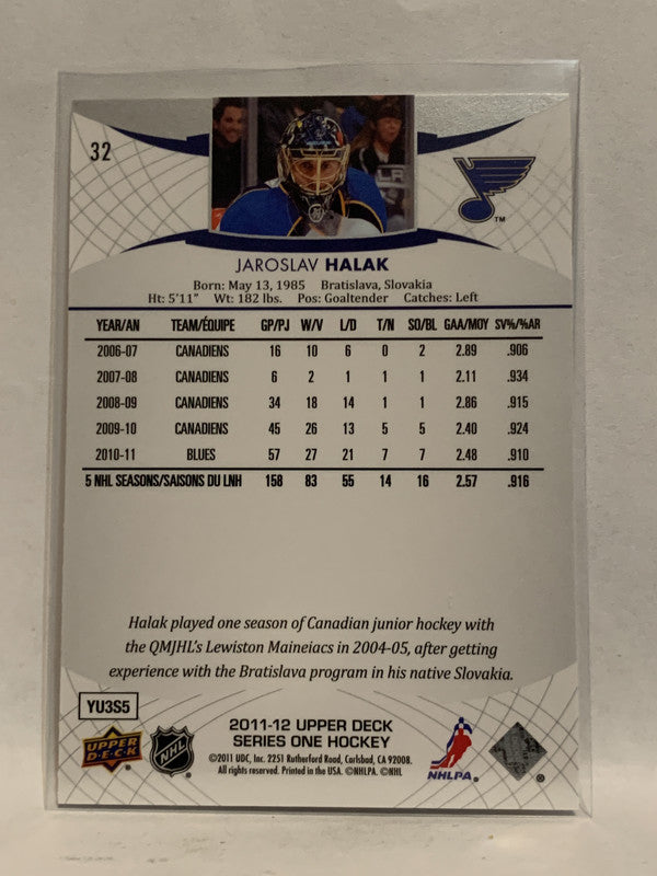 #32 Jaroslav Halak St Louis Blues 2011-12 Upper Deck Series One Hockey Card