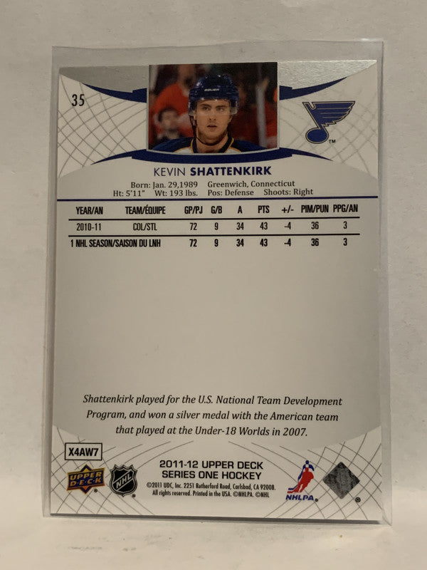 #35 Kevin Shattenkirk St Louis Blues 2011-12 Upper Deck Series One Hockey Card