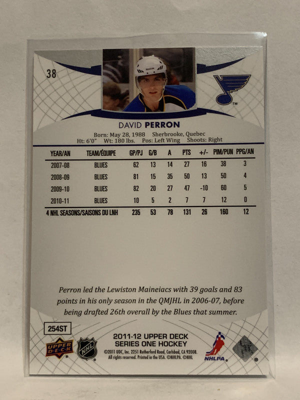 #38 David Perron St Louis Blues 2011-12 Upper Deck Series One Hockey Card