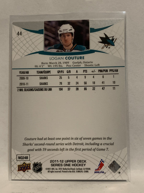 #44 Logan Couture San Jose Sharks 2011-12 Upper Deck Series One Hockey Card