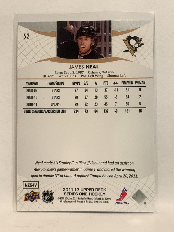#52 James Neal Pittsburgh Penguins 2011-12 Upper Deck Series One Hockey Card