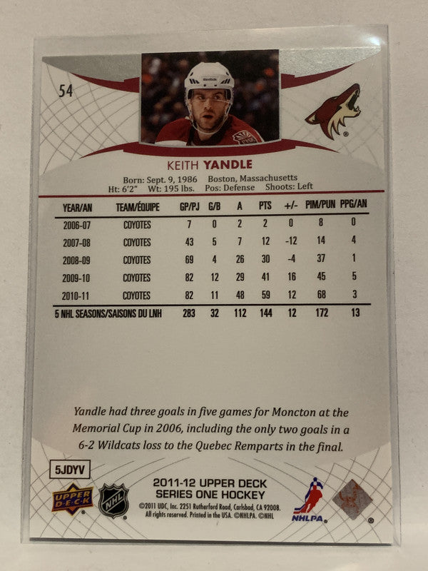 #54 Keith Yandle Phoenix Coyotes 2011-12 Upper Deck Series One Hockey Card NHL