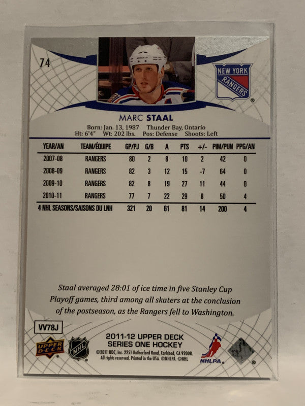 #74 Marc Staal New York Rangers 2011-12 Upper Deck Series One Hockey Card
