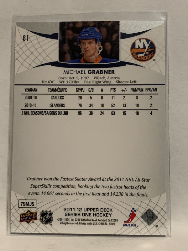 #81 Michael Grabner New York Islanders 2011-12 Upper Deck Series One Hockey Card
