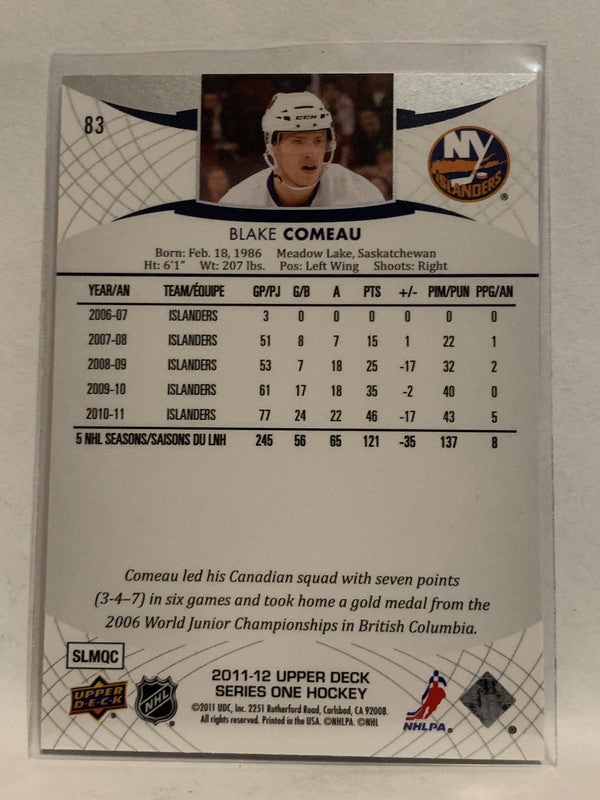 #83 Blake Comeau New York Islanders 2011-12 Upper Deck Series One Hockey Card