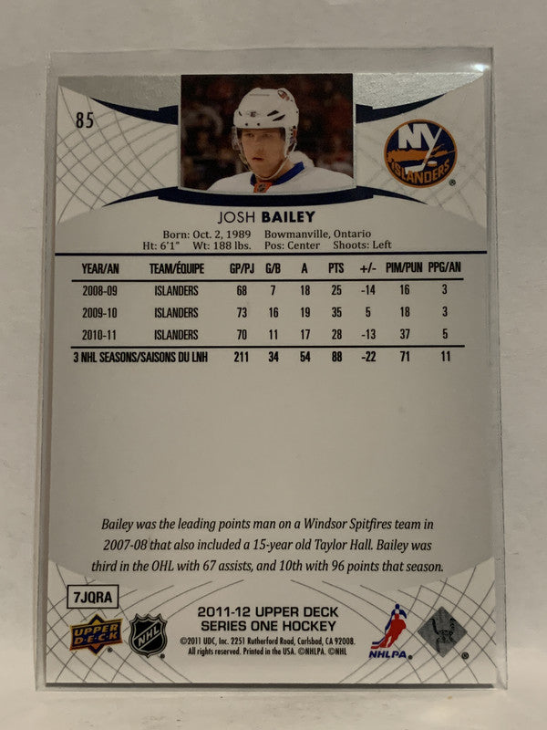 #85 Josh Bailey New York Islanders 2011-12 Upper Deck Series One Hockey Card