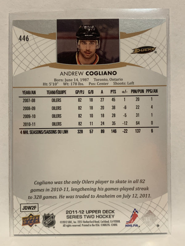 #446 Andrew Cogliano Anaheim Ducks 2011-12 Upper Deck Series Two Hockey Card NHL