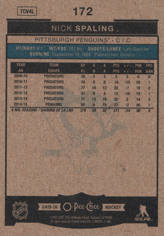 #426 Brandon Sutter Pittsburgh Penguins 2015-16 O-Pee-Chee Hockey Card OJ