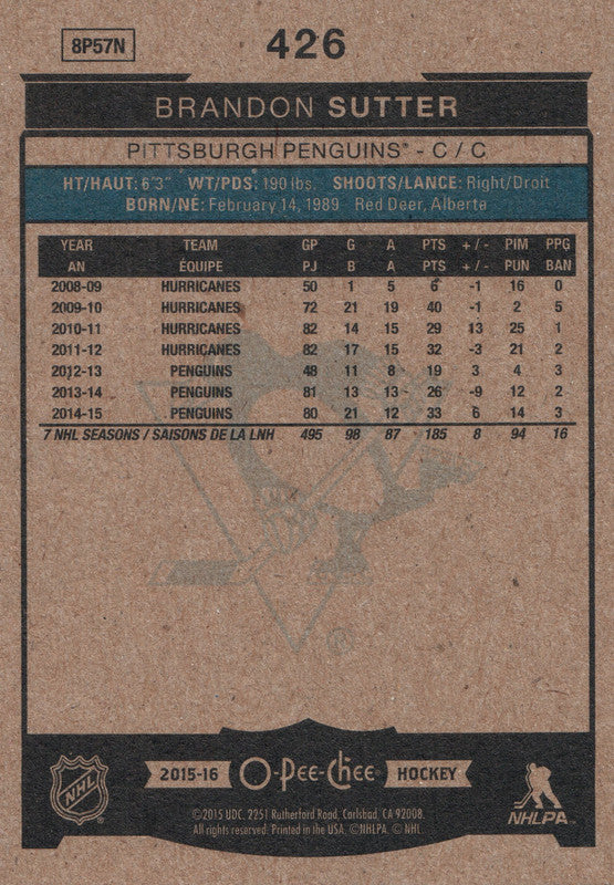 #93 Steve Downie Pittsburgh Penguins 2015-16 O-Pee-Chee Hockey Card OJ