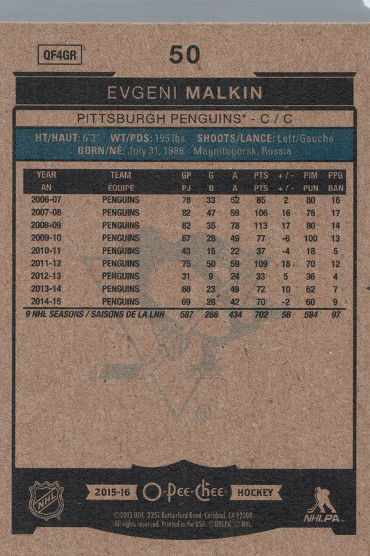 #390 Christian Ehrhoff Pittsburgh Penguins 2015-16 O-Pee-Chee Hockey Card OJ