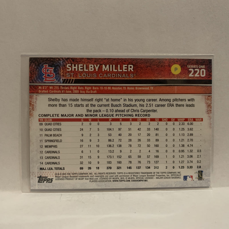 #220 Shelby Miller St Louis Cardinals 2015 Topps Series 1 Baseball Card I2