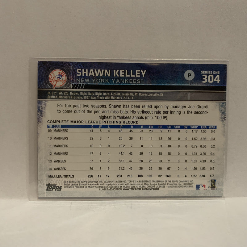 #304 Shawn Kelley New York Yankees 2015 Topps Series 1 Baseball Card I1