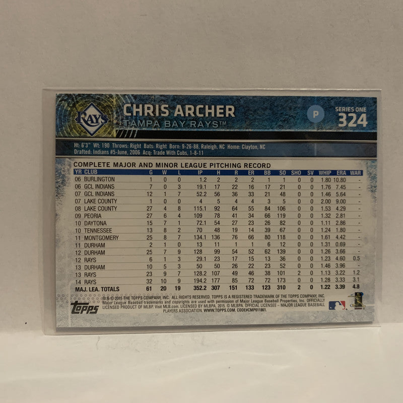 #324 Chris Archer Tampa Bay Rays 2015 Topps Series 1 Baseball Card I3