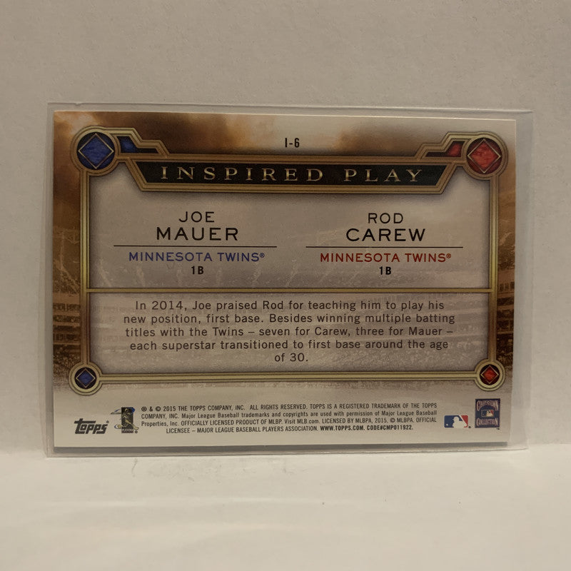 I-6 Joe Mauer Rod Carew Inspired Play 2015 Topps Series 1 Baseball Card I3