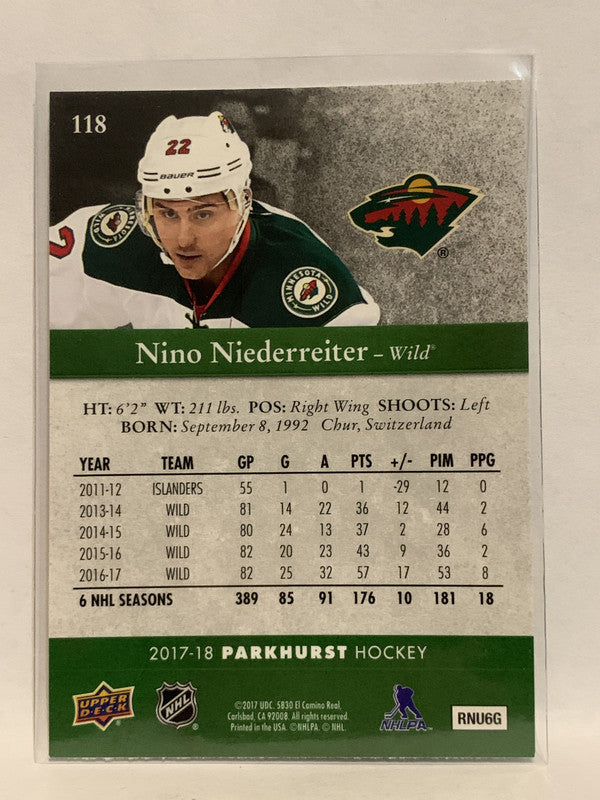 #118 Nino Niederreiter Minnesota Wild 2017-18 Parkhurst Hockey Card