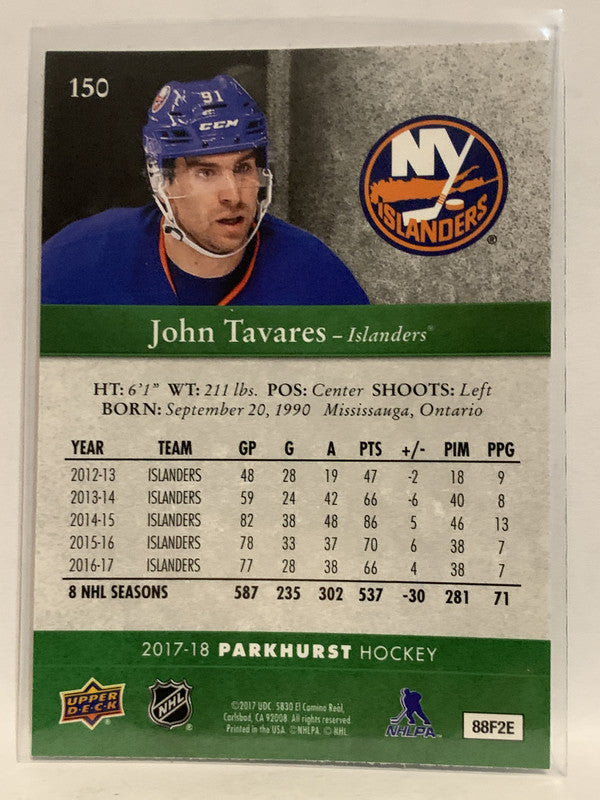 #150 John Tavares New York Islanders 2017-18 Parkhurst Hockey Card