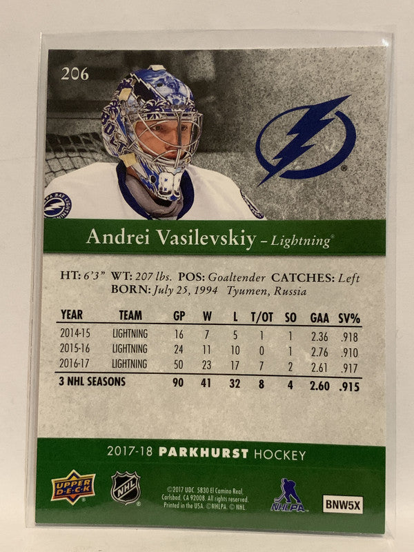 #206 Andrei Vasilovskiy Tampa Bay Lightning 2017-18 Parkhurst Hockey Card