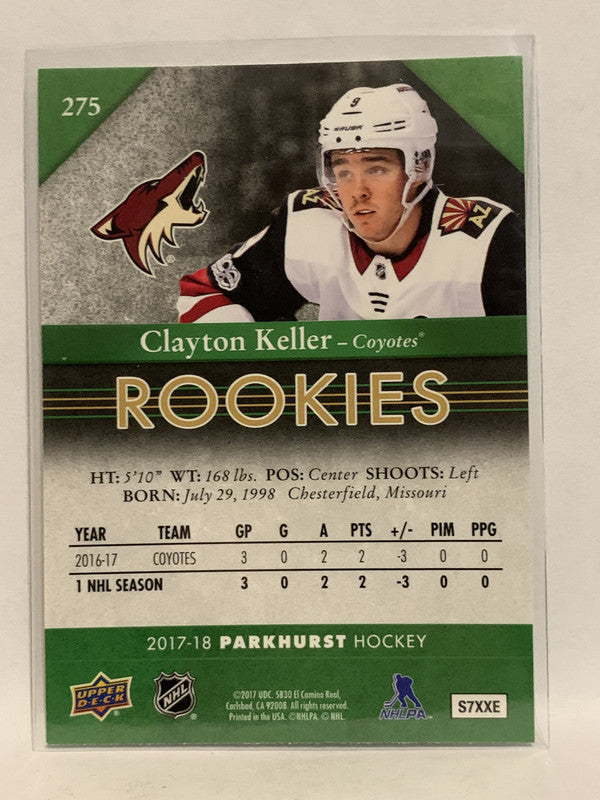 #275 Clayton Keller Rookie Phoenix Coyotes 2017-18 Parkhurst Hockey Card