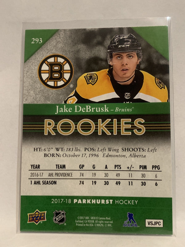 #293 Jake BeBrusk Rookie Boston Briuns 2017-18 Parkhurst Hockey Card NHL