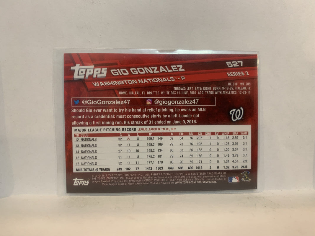 #527 Gio Gonzalez Washington Nationals 2017 Topps Series 2 Baseball Card MZ1