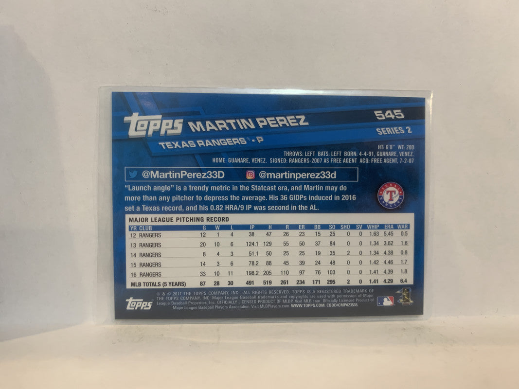 #545 Martin Perez Texas Rangers 2017 Topps Series 2 Baseball Card MZ1