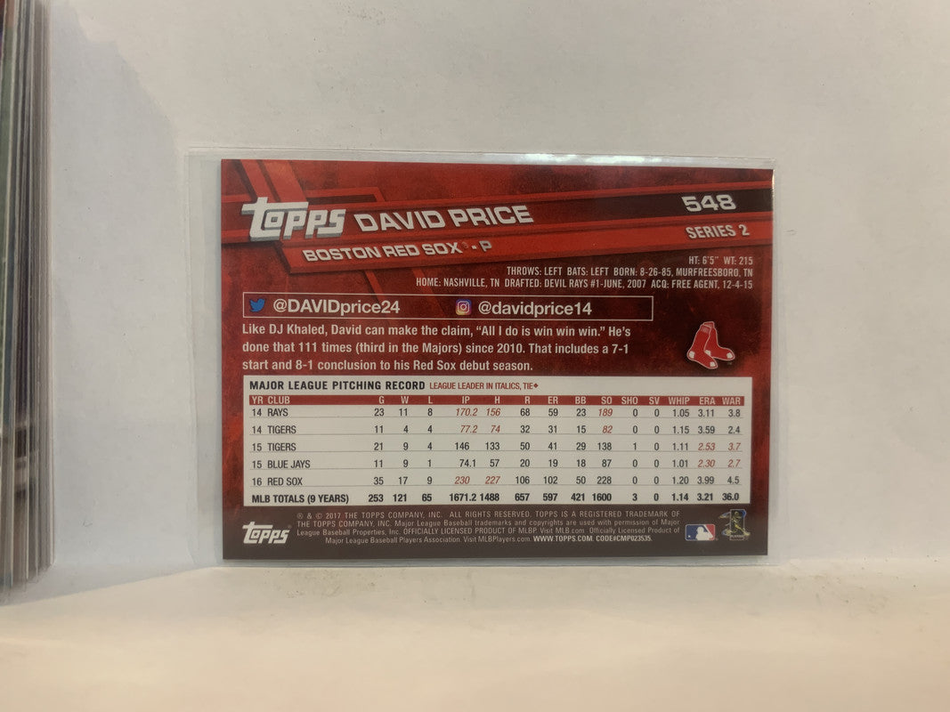 #548 David Price Boston Red Sox 2017 Topps Series 2 Baseball Card MZ1