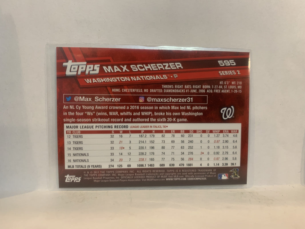 #595 Max Scherzer Washinton Nationals 2017 Topps Series 2 Baseball Card MZ3
