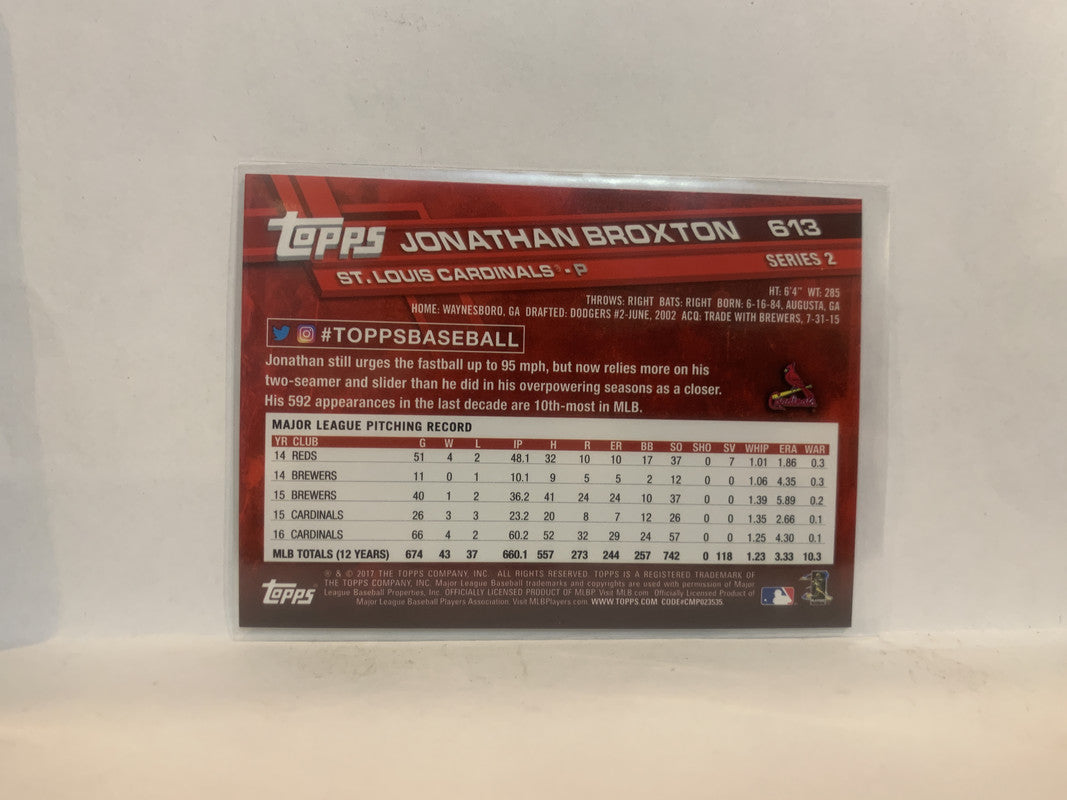 #613 Jonathan Broxton St Louis Cardinals 2017 Topps Series 2 Baseball Card MY