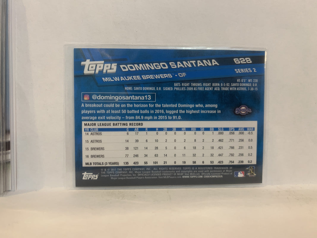 #628 Domingo Santana Milwaukee Brewers 2017 Topps Series 2 Baseball Card MZ3