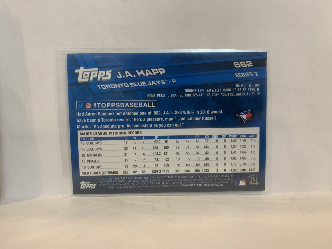 #662 J.A. Happ Toronto Blue Jays 2017 Topps Series 2 Baseball Card MW