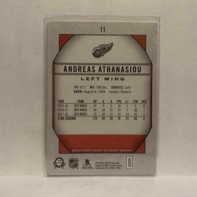 #11 Andreas Athanasiou Detroit Red Wings2018-19 OPC Coast to Coast Hockey Card KE
