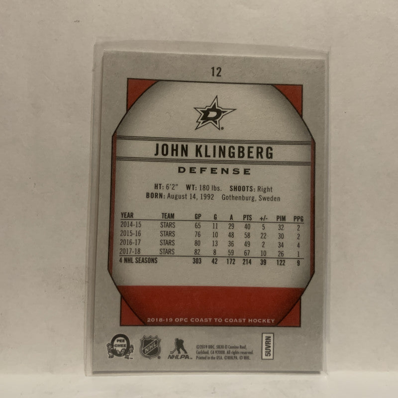 #12 John Klingberg Dallas Stars2018-19 OPC Coast to Coast Hockey Card KJ