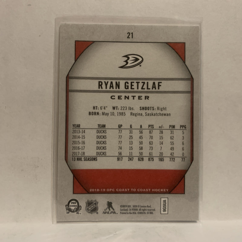 #21 Ryan Getzlaf Anaheim Ducks2018-19 OPC Coast to Coast Hockey Card KH