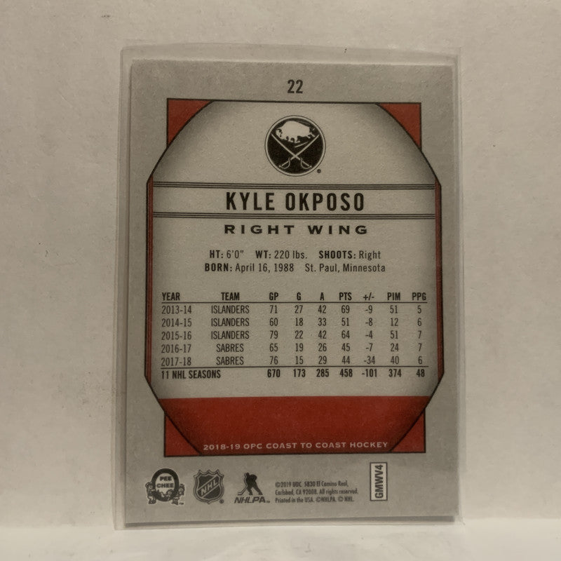 #22 Kyle Okposo Buffalo sabres2018-19 OPC Coast to Coast Hockey Card KJ