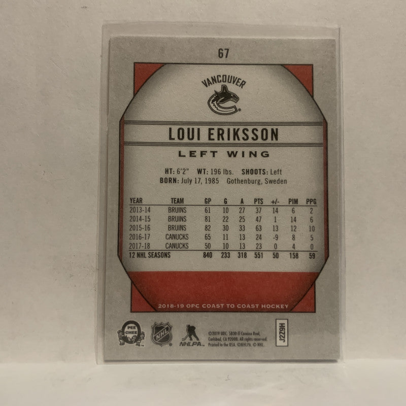 #67 Loui Eriksson Vancouver Canucks2018-19 OPC Coast to Coast Hockey Card KF
