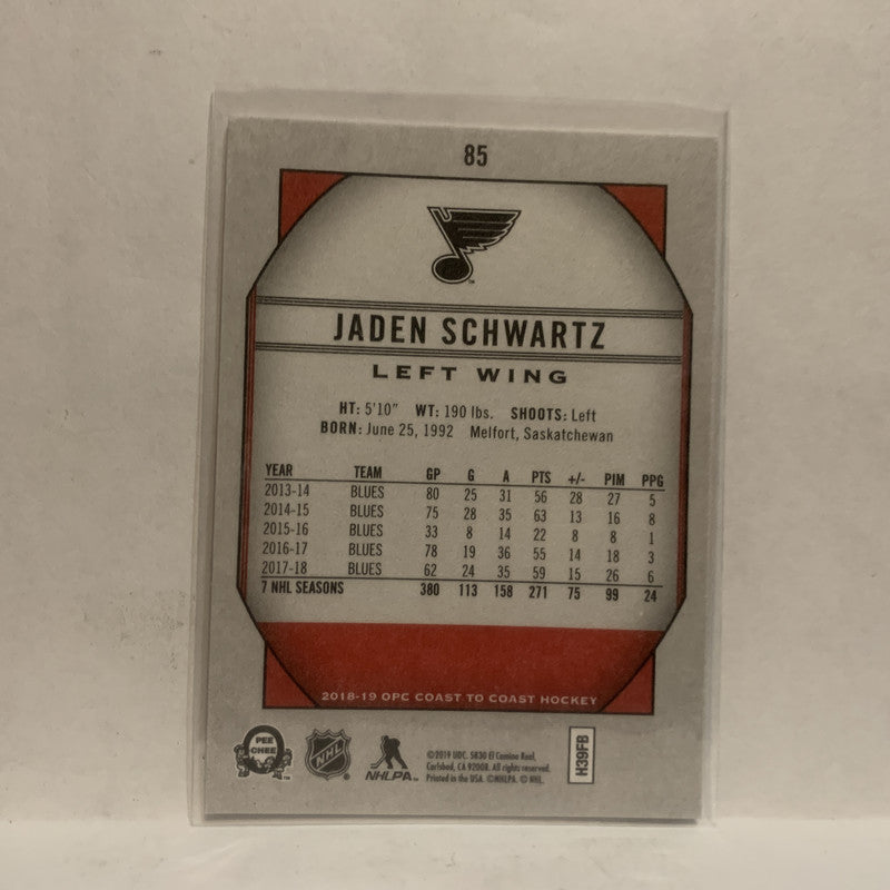 #85 Jaden Schartz St Louis Blues2018-19 OPC Coast to Coast Hockey Card KA