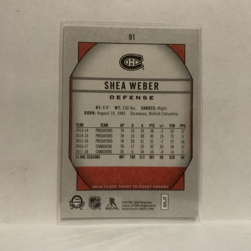 #91 Shea Weber Montreal Canadiens2018-19 OPC Coast to Coast Hockey Card KG
