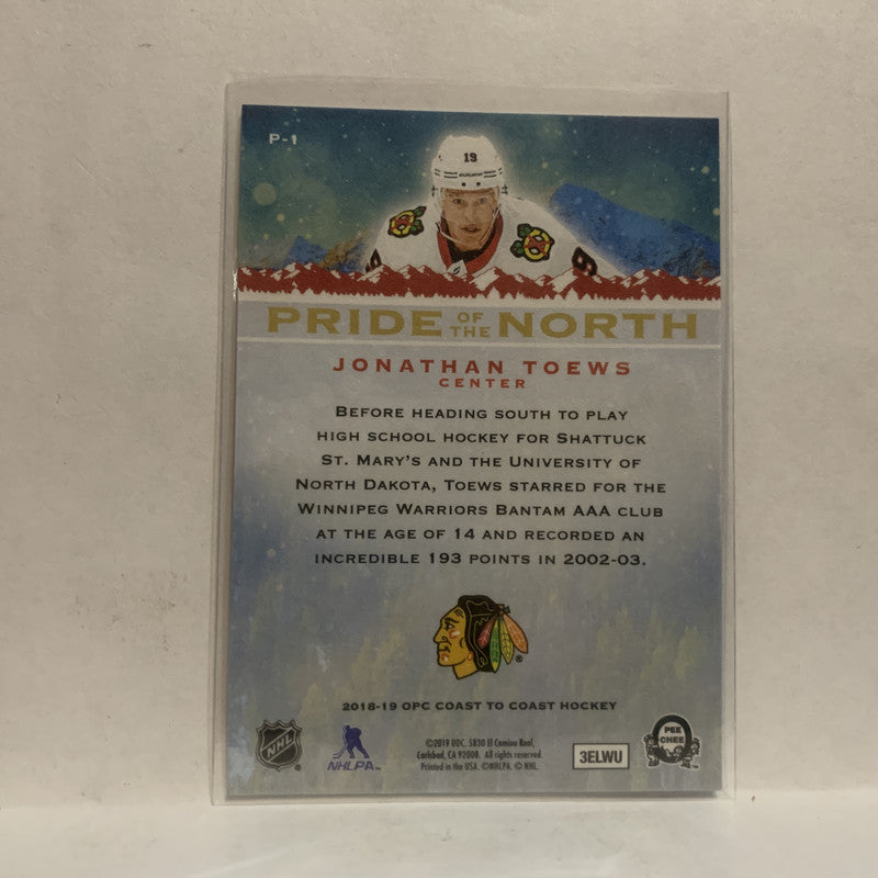 P-1 Jonathan Toews Pride Chicago Blackhawks2018-19 OPC Coast to Coast Hockey Card KD