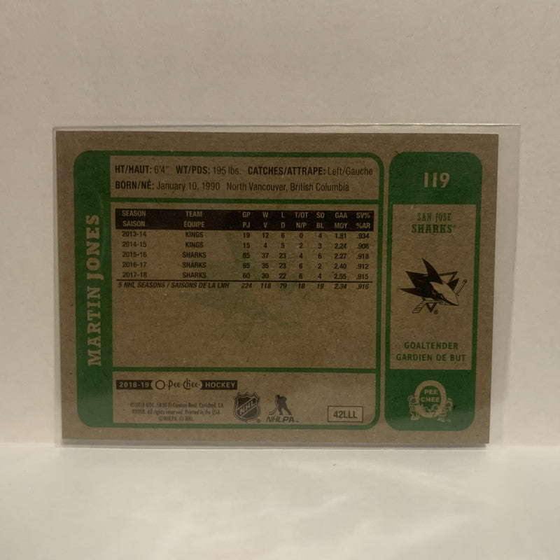 #119 Martin Jones San Jose Sharks 2018-19 O-Pee-Chee Hockey Card JR
