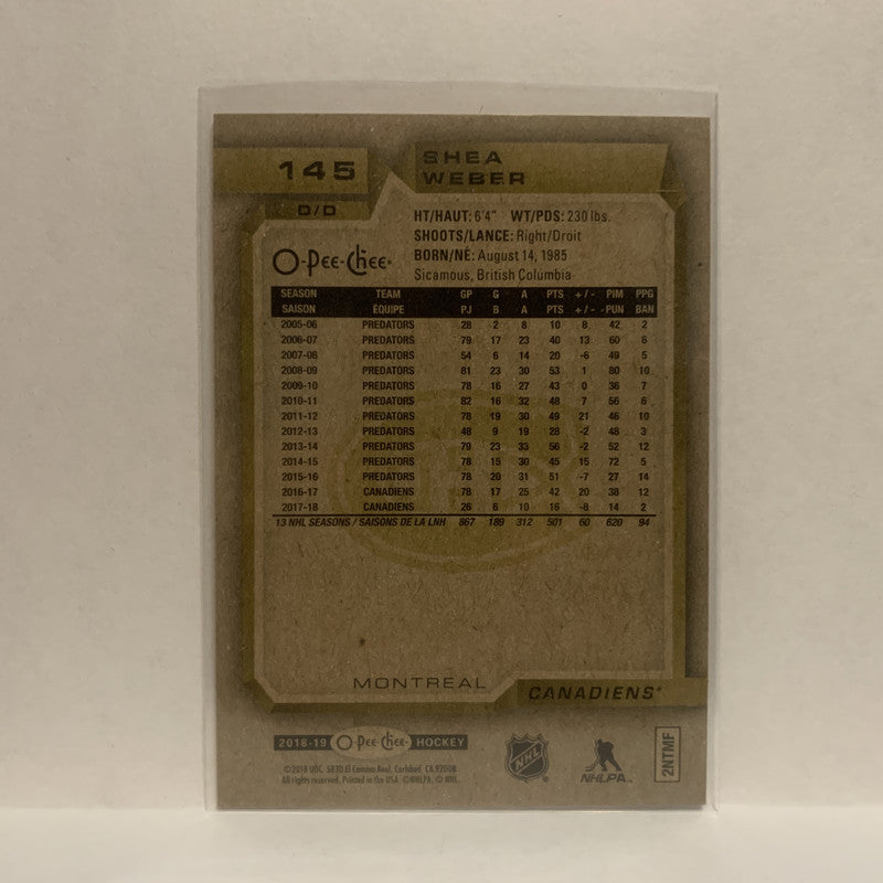 #145 Shea Weber Montreal Canadiens 2018-19 O-Pee-Chee Hockey Card JQ